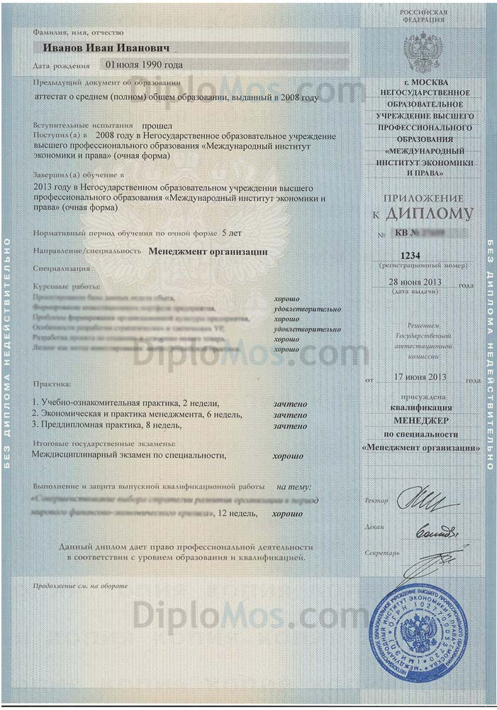 Важно: Заполнение по стандартам, настоящая «мокрая» печать учебного заведения, все подписи ответственных лиц. Можем сделать копию по Вашему образцу.