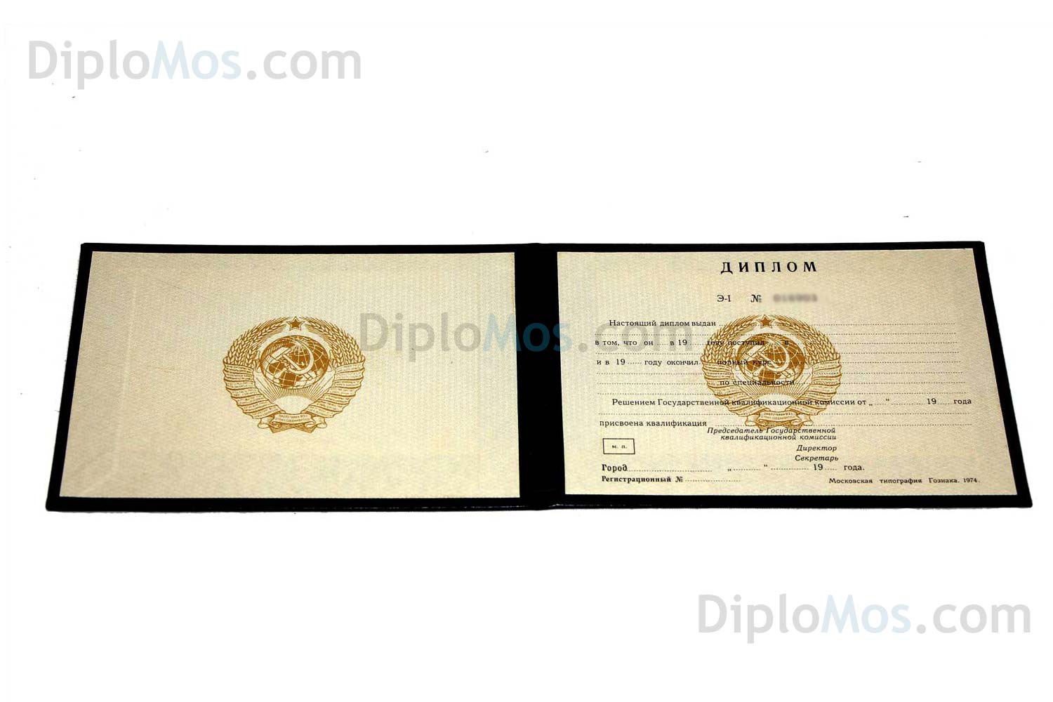 Диплом о высшем образовании СССР с 1970-х по 1996. Полный комплект, диплом в наличии. Гознак |